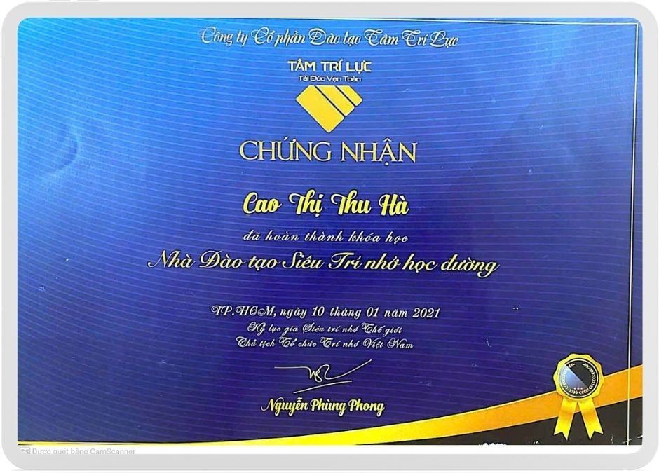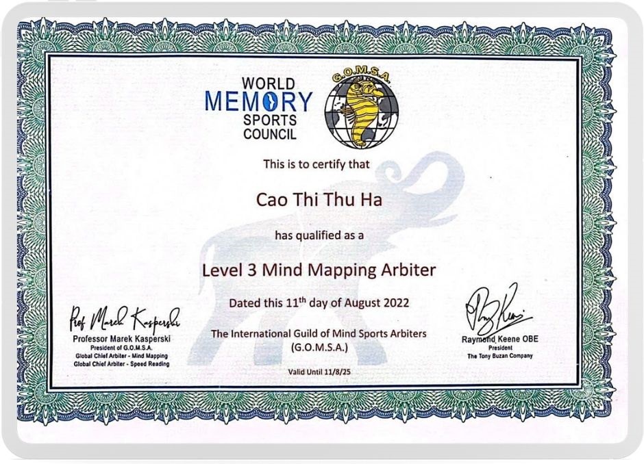 Rèn luyện 11 kỹ thuật ghi nhớ được Thầy Nguyễn Phùng Phong – Chủ tịch Siêu Trí Nhớ Việt Nam thuộc Liên minh Siêu Trí Nhớ Toàn Cầu; HLV trưởng đội tuyển Siêu Trí Nhớ Việt Nam đào tạo gồm: